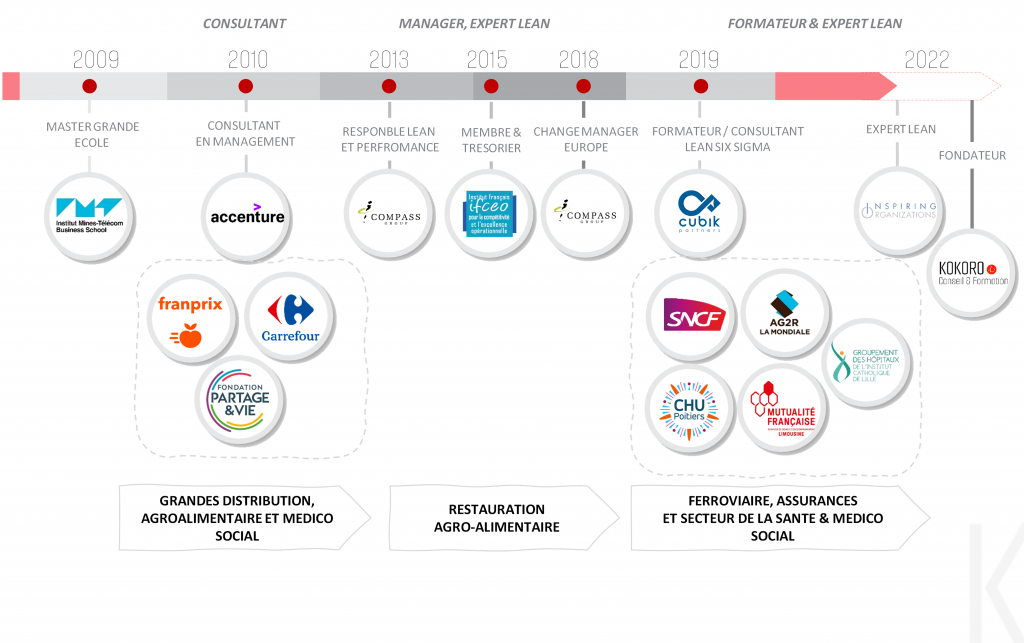Je m’appelle Frédéric Cimma, j’accompagne depuis plus de 12 ans les entreprises et leurs dirigeants dans leur transformation à travers le chemin du Lean et de l’Amélioration Continue. J’ai essentiellement collaboré dans des entreprises de services, en interne en tant que responsable Lean ou en externe en tant que consultant. J’ai développé une expertise dans des contextes de fonctions supports, mais également dans le secteur ferroviaire et celui de la santé et du médico social, secteur qui me tient à cœur.